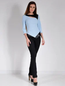 Блузка белая женская офисная. Блузка нарядная, вечерняя, повседневная, деловая блузка для вуза, работы, блузка для праздника, отдыха, прогулок юбилея. Элегантная приталенная блузка, с изящным вырезом на груди, с баской, декорированной кожаной отделкой. Создает строгий и деловой образ. Это очень стильная модная блузка- хит сезона 2022, которая всегда будет выделять Вас среди других. Блузка укороченная больших размеров. Она может быть с длинным рукавом для зимы, но подойдет и весной и летом. Выпускается белая, черная, красная, голубая, мятная. Ее можно носить как с узкой кожаной юбкой, так и с брюками палаццо, оверсайз, зауженными юбками. Особенно хороша она в сочетании с кожаными изделиями. Блузка великолепно стирается, не садится при стирке. В ней очень комфортно, за счет свойств смесовой ткани. Стирать лучше руками.