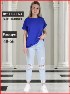 Женская базовая однотонная футболка прямого покроя со спущенным плечом и отворотом на рукаве. Брендовая футболка выполнена из высочайшего по качеству трикотажного полотна хлопок 100%, что позволяет телу дышать и чувствовать себя комфортно в любую, даже самую жаркую погоду. Стильная, прямого покроя футболка, имеет идеальную посадку и длину, что позволяет носить ее со спортивной одеждой, джинсами, кожаными брюками, шортами, велосипедками, юбкой. Ее можно одеть под пиджак, кожаную или джинсовую куртку. Футболка выполнена в модных ярких насыщенных цветах, конечно, в белом и черном цвете. Подойдет для девочек, девушек и женщинам. Незаменимая вещь для спорта, фитнеса, бега, прогулок, занятий физкультурой в школе. Футболка великолепно смотрится с брюками, юбкой, что позволяет носить ее в офис, на работу, любую прогулку и брать на отдых на море и в любые путешествия. Подойдет для беременных женщин и кормящих мам. Очень естественно будет смотреться как стильная домашняя одежда. Переносит многочисленные стирки в деликатном режиме и при этом великолепно сохраняет форму. Одежда свободного кроя- это идеально на каждый день. Футболка не только маленьких, но и больших размеров незаменимая часть гардероба современной женщины.